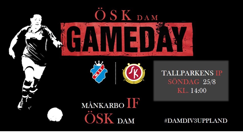 På söndag, 25/8, åker ÖSK-dam till Tallparken i Månkarbo för att ta sig an serieledarna Månkarbo IF på bortaplan. Matchstart 14:00! Läget i truppen skulle kunna kallas manfall. Inte mindre än 15 återbud har kommit till denna match p g a skador och jobb. Räknar vi dessutom in de gravida/nyblivna mammorna samt långtidsskadade har vi hela 24 (!) återbud. Trots det kommer vi att åka med en trupp på 14 tjejer som definitivt kommer kunna ge Månkarbo en match. Bredden ÄR vår styrka. Månkarbo leder serien och de enda poäng de tappat är en förlust (Östervåla i premiären) och ett kryss (ÖSK-dam). De är ett starkt fysiskt lag som är duktiga på fasta situationer och som dessutom kan spetsa till laget med sin spelande tränare Sarah Storck. Mest imponerad är jag nog över deras vinst mot duktiga Östervåla på bortaplan där de lyckas vända ett 0-1 underläge till vinst under andra halvlek. ÖSK-dam kommer från en riktig kämpamatch mot Gimo. Där visar tjejerna återigen att de dagar spelet inte flyter som det brukar knyter de näven i fickan och kämpar tills domaren blåser av. Den inställningen och lite snabbare beslut med boll kommer att behövas om det ska bli några poäng denna helg. En sak är säker, tjejerna kommer sälja sig dyrt. I div 5 åkte tjejerna på en snöplig förlust mot Storvreta på bortaplan. Chansmässigt borde de nog ha vunnit matchen men Storvreta var mer effektiva och vann med 2-0. Det fanns dock glädjeämnen även här. Agnes och Julia från flicklaget fick göra debut i seniorsammanhang och Agnes så pass bra att hon tilldelades matchens kämpe. På lördag,24/8, är det fotbollens dag på IP och då har ni möjlighet att se våra div 5-tjejer försöka ta revansch mot Härnevi. Matchen börjar kl. 14.00 och även här kommer två tjejer från flicklaget att delta, nämligen nyligen nämnda Agnes och Elise. Missa inte det!!! Tack för uppmärksamheten. // ÖSK-dam