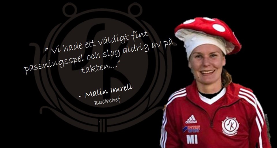 Hemsidan fortsätter att jag ”Matchens kämpar” för brinnande livet och nu har vi äntligen fått tag i Malin Imrell. Malin blev utav Tilde Eliardsson utsedd till matchens kämpe i seriepremären borta mot Rimbo IF 2, en match som ÖSK-dam vann med 1-7 efter en riktig urladdning i andra halvlek. Tilde utsåg dig till ”matchens kämpe” i premiären borta mot Rimbo, var det förväntat? - Det var inte alls väntat så jag blev jätteglad :-) Matchen slutade till sist hela 7-1 till ÖSK-dam, varför vann ni? - Vi hade ett väldigt fint passningsspel och slog aldrig av på takten så Rimbo orkade helt enkelt inte. Hur tycker du annars att säsongen varit så här långt i din ”comeback”? - Det har varit en bra säsong hittills med roliga och varierande träningar. Dessutom har vi nu två storvinster där vi spelat riktigt fin fotboll. Två storvinster ja, i andra matchen så krossades ESK 2 med hela 15-0 och du utsåg Matilda Wiik till matchens kämpe, vad gjorde hon för att förtjäna det? - Wiiken kämpar och ger allt i alla situationer, också är hon en riktigt skicklig fotbollsspelare. Att hon inte spelat fotboll på flera år är svårt att tro! Du nickade själv in ett mål mot ESK vilket innebär gofika från tränarna….ett fika du missade…surt? - Ja, det var riktigt surt. Malin har precis som ”Wiiken” inte spelat fotboll på några år och det är minst lika svårt att tro, så bli inte förvånade om det dyker upp fler bilder på henne iförd denna vackra huvudbonad. Närmast står en hel del matcher på programmet. Redan imorgon tar tjejerna emot GUSK 2 på IP kl. 19.15 för match i div 4. På lördag spelar div 5 hemma mot Jomala kl. 11.00 medans div 4 åker på bortamatch mot Märsta IK med start kl. 11.30. Håll utkik på hemsidan, mer info kommer där. Är ni nyfikna på hur det går för tjejerna gör ni säkrast i att följa @oskdamfotboll på instagram och/eller ÖSK Dam Fotboll på facebook. Tack för uppmärksamheten / ÖSK-dam.