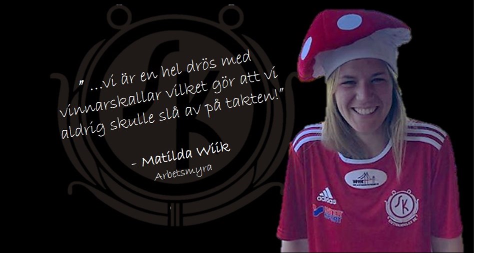 Matilda Wiik är en tjej som ger 110% i alla situationer. Knäskador, husbygge m m är inget som ändrat på det. I sin blott andra match på tre år slet hon så pass bra att Malin Imrell utsåg henne till matchens kämpe i utklassningssegern mot ESK 2. Hemsidan har nu fått tag i även henne. Utsedd till matchens kämpe av Malin efter 15-0 mot ESK, var det väntat? - Det var mycket fina ord jag fick av Imrell som jag tar med mig, men denna match hade vem som helst kunna blivit matchens kämpe, då alla gjorde ett mycket bra jobb vilket vi får bevisat med så otroligt många målskyttar och bakåt hålla nollan ESK var kanske inte det svåraste motståndet men trots det slog ni aldrig av på takten, var kommer drivet i truppen ifrån tror du? - Drivet i truppen är nog i grund och botten att vi har väldigt kul tillsammans, men sen är vi en hel drös med ”vinnarskallar” vilket gör att vi aldrig skulle slå av takten! ;-) Matchen efter, mot Skuttunge, blev betydligt tuffare och ni fick slita er till ett kryss (2-2). Vad var det Moa gjorde i den matchen som fick dig att utse henne till matchens kämpe? - Matchen mot skuttunge blev som sagt tuffare och vi kunde inte riktigt komma in i vårt egna spel, men Moa gjorde ett ”hästjobb” på innermittfältet trots värmen och hård kamp! Du var ju väldigt ”färsk” i din comeback när vi träffade dig här på hemsidan första gången. Nu har du hunnit varit med betydligt mera, ångrar du dig eller trivs du fortfarande på plan och i ”gänget”? - Mycket dum fråga... jag hade inte dykt upp nå mer om jag hade ångrat mig förstår ni väl, jag trivs bra med hela laget både på och utanför planen, träningarna är varierande och de bästa är att vi oftast kan spela på full plan då uppslutningen på träningarna är så pass bra vilket ökar konkurrensen och kvalitén. Till sist…hur kan det komma sig tror du att födelsedagsbilderna av Alina på vårt instagramkonto alltid blir så otroligt bra? - Så fort kameran är framme är Alina där, så det finns nog en hel del bilder och man kan ju inte lyckas varje gång! Matilda har på kort tid med sin positiva energi och frejdiga spelstil blivit en viktig pusselbit i ÖSK-dam både på och utanför planen. Med tanke på vad hon presterat hittills efter så långt uppehåll är man ju väldigt nyfiken på hur bra hon ska vara längre fram….. Är ni nyfikna på hur det går för tjejerna gör ni säkrast i att följa @oskdamfotboll på instagram (där man bl a kan se den omtalade bilden på Alina) och/eller ÖSK Dam Fotboll på facebook. Tack för uppmärksamheten / ÖSK-dam.