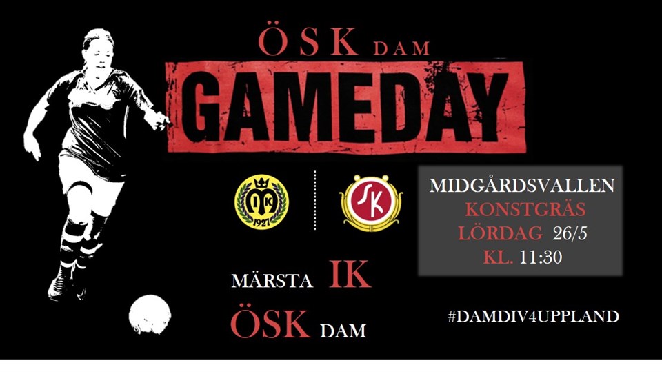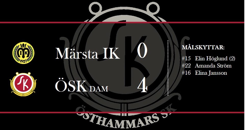 Under lördagen, 26/5, åkte då tjejerna till ett tropiskt varmt Märsta för match i div 4 mot Märsta IK. ÖSK-dam gjorde vad som behövdes och egentligen inte mycket mer och vann komfortabelt med 0-4. ÖSK-dam tar omgående tag i taktpinnen på Midgårdsvallens konstgräs. Tjejerna är betydligt mer resoluta än våra motståndare. Spelet på mittplan är hur bra som helst men de riktigt farliga målchanserna uteblir. Oftast på grund av att det slås en eller till och med två passningar för många. Värmen tar också ut sin rätt och redan efter en kvart ser man att tjejerna i båda lagen har en extra motståndare i vädret. Nu börjar också målchanserna komma bl a skapas en trippelchans i minut 17 där Amanda, Jossan P och Elin H alla är nära att få bollen i mål. Trycket kvarstår och bara minuten senare kommer också 0-1 då Elina serverar Elin H mer eller mindre öppet mål. Efter 25 minuter blåser domaren av för drickapaus och efter den lyfter Märsta temporärt upp spelet något men sakta men säkert återtar ÖSK-dam initiativet. 0-2 kommer i matchminut då Elina åter hittar Elin H med en djupledsboll. Elin rundar kallt målvakten och rullar in bollen. Bara minuten senare kommer också 0-3. Elin H kommer runt på vänsterkanten och spelar längs backen in mot mål där Amanda S fläker sig fram och bestämt sätter bollen i nät. 0-3 blir också halvtidsresultatet. Andra halvlek påminner väldigt mycket om den första. ÖSK-dam äger mycket boll men skapar kanske inte lika många målchanser som vi är vana att se dem. En stor anledning till det är med största sannolikhet värmen som gör att mittfältarna inte orkar fylla på lika mycket som dem brukar. Ett mål får vi ändå se i halvleken då Elin H bjuder tillbaka till Elina som får sätta 0-4 i minut 72´. Bortsett från målet är det mest dramatiska då Elin M får en Märstarensning i tinningen och faller ihop som en knockad boxare. Elin kvicknade till efter en stund men ordentligt tilltufsad blev hon. Nu börjar en ny vecka där fredagen blir dagen D. Då bjuds det nämligen på derby uppe på IP mot fullpoängaren Upplands Ekeby IF. Ett derby som dessutom blir en liten seriefinal. Boka in den redan nu och självklart kommer mer inför den på hemsidan under veckan. Är ni nyfikna på hur det går för tjejerna gör ni säkrast i att följa @oskdamfotboll på instagram och/eller ÖSK Dam Fotboll på facebook. Tack för uppmärksamheten / ÖSK-dam.