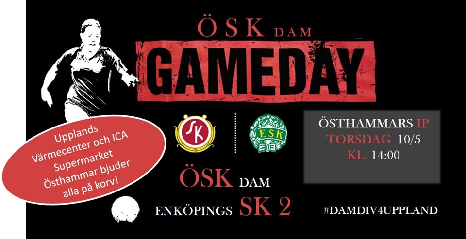 Imorgon torsdag, 10/5, är det äntligen hemmapremiär för ÖSK-dam i div 4. För motståndet står Enköpings SK 2. Matchstart 14:00, kom i tid för Upplands värmecenter i samarbete med ICA Supermarket Östhammar bjuder alla besökare på korv! Efter första matchen mot Rimbo är det ett lag fullt av självförtroende som ser fram emot hemmapremiären. Även denna gång får vi möta ett lag vars förstalag ligger i div 1 så det blir med all säkerhet ingen enkel match men tjejerna har med all tydlighet visat att dem inte är i div 4 för att ”bara hänga kvar”. Läget i truppen är fortsatt bra. Jämfört med matchen senast saknas Elin Höglund (match med Upplandslaget) och Jossan P (bortrest) men bredden i detta lag gör att vi har gott om ersättare att sätta in. Enköping inledde div 4 med förlust mot Upplands Ekeby IF, 3-0, och i sin andra match fick dem w.o. av Gimo IF 2. Lagen står alltså på lika många poäng inför matchen och nu gäller det att visa vilket lag som vill ta upp jakten på UEIF i toppen av tabellen. Tjejerna får laget på kvällens träning så ni får hålla er lite till tåls med hur truppen ser ut. Lag 2 får också dem besök till IP. På lördag, 12/5, med start kl 16.00 kommer nämligen våra eviga konkurrenter från Häverödal på besök för en toppmatch i div 5. Även här är frågan vilket av lagen som vill ta upp jakten på serieledarna Films SK. Under söndagen beger sig laget sen till Skuttunge för att spela omgång 3 av div 4. Den matchen drar igång kl. 17.00. Som ni märker har tjejerna ett hektiskt schema och vi får se ifall hemsidan hinner hålla er uppdaterade eller om det blir en sammanfattning på måndag. :-) Är ni nyfikna på hur det går för tjejerna i helgen gör ni säkrast i att följa @oskdamfotboll på instagram och eller ÖSK Dam Fotboll på facebook. Tack för uppmärksamheten / ÖSK-dam.