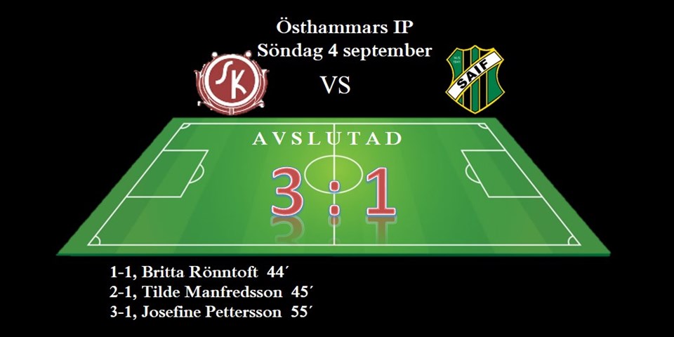 ÖSK-dam fick under söndagen revanschen mot Sunnersta som hemsidan efterlyste inför matchen. På en regntung plan och inte allt för många plusgrader i luften tog tjejerna ”som vanligt” tag i spelet omgående. Sunnersta försvarade sig dock både lågt och bra vilket gjorde att tjejerna hade svårt att komma till de riktigt klara målchanserna. Ofta fastnade vi ute på någon av kanterna med massor av inkast till följd. Sunnersta är ett lag som dock verkligen försöker spela bollen efter marken (ibland nästan dumdristigt) och när dem får fart framåt har dem flera snabba spelare som kan hota. Det är också på en sådan omställning med 3-4 snabba passningar dem gör sitt ledningsmål i minut 34, där deras forward blir helt fri med Tina. Tina räddar första skottet men Skuttungetjejen kan sen enkelt slå in sin egen retur. Tjejerna låter sig dock inte nedslås utan fortsätter att trumma på och i matchminut 44´ presenterar sig vår nya tjej Britta på bästa sätt. TT slår ett inlägg efter backen från vänster, målvakten kan inte hålla bollen och Britta är där och stöter in 1-1. Hon var dock inte nöjd där utan direkt på avspark vinner hon bollen på mittplan och ”bjuder tillbaka” till TT med en perfekt passning in mellan Sunnerstas mittbackar som TT förvaltar på bästa sätt. Tjejerna vänder alltså ett 0-1 underläge till ledning med 2-1 på mindre än en minut och vi får gå till paus i ledning, skönt! Andra halvlek är den först lik till en början med hög press från vår sida och ett tillbakapressat Sunnersta. 10 minuter in på halvleken kommer Britta runt på sin kant och slår ett inlägg som Jossan P kommer perfekt till och spikar slutresultatet till 3-1. I slutet av halvleken lyfter Sunnersta upp spelet något men några riktigt farliga målchanser lyckas dem inte skapa, istället har vi ytterligare en boll inne (Britta igen) men som tyvärr döms bort för offside. Kort sagt står tjejerna för en rätt igenom homogen insats där dem kontrollerar i stort sett hela matchen och Britta Rönntoft visar tydligt att hon med sin fysik kommer att bli en av de ledande spelarna i vårt lag. Detta tar vi med oss nu när vi laddar för ”hängmatchen” mot Brottby som spelas på onsdag. I och med segern har vi även häng på lagen framför oss och har goda möjligheter att nå fjärde platsen i tabellen. / ÖSK-dam P.S. Du vet väl att du kan följa ÖSK-dam på sociala medier? Facebook: https://www.facebook.com/%C3%96SK-Dam-Fotboll-1641860062739774/?ref=aymt_homepage_panel Instagram: @oskdamfotboll